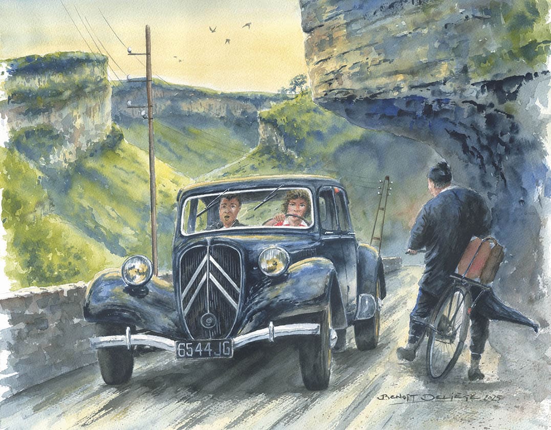 « Impossible, Lucien, mon talon est coincé sous la pédale d’accélérateur et cessez d’agripper ma robe, vous allez la déchirer ! »
