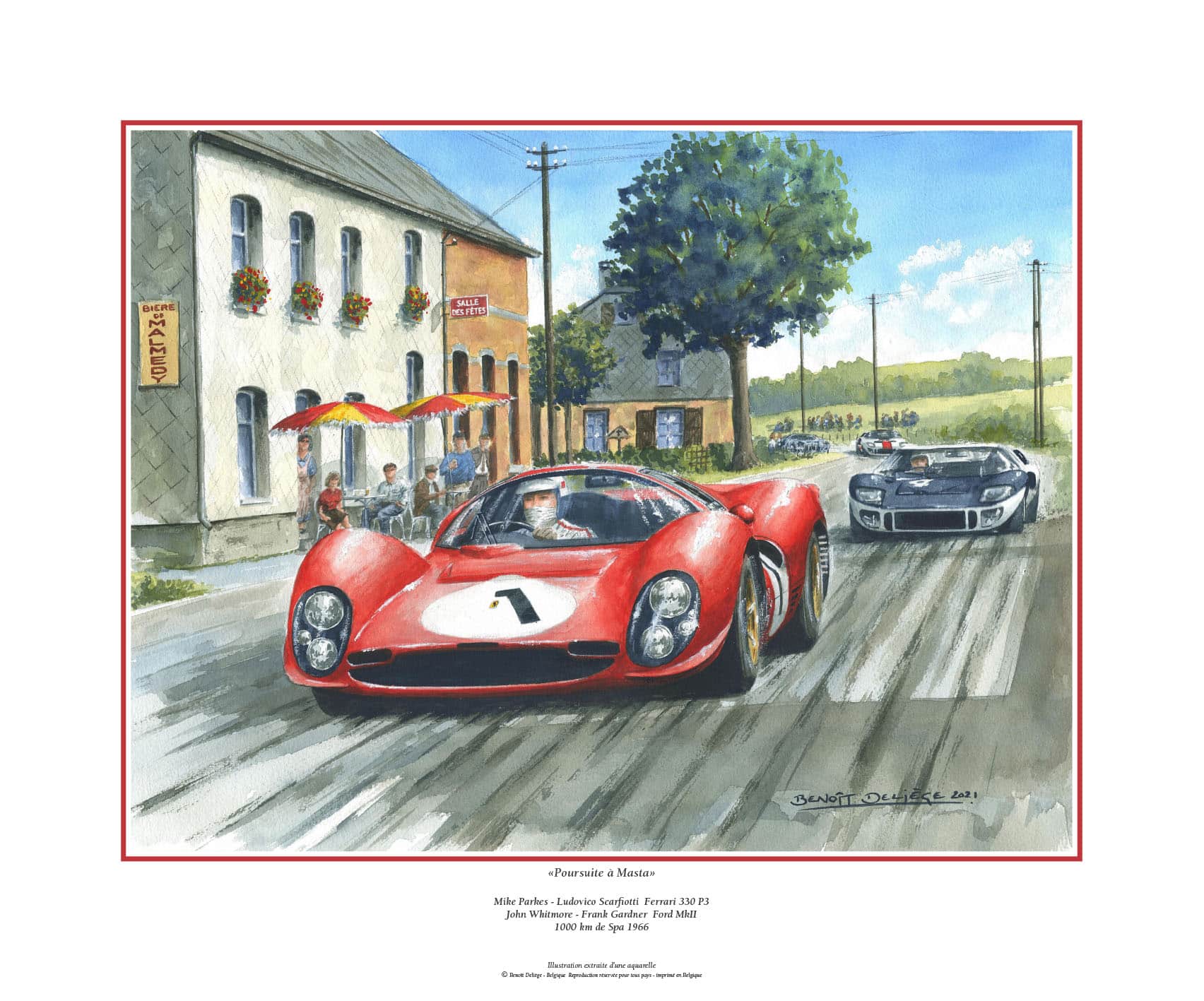Parkes – Scarfiotti Ferrari 330 P4 1000 km de Spa 1966 Edition limitée 100 exemplaires Format 50x60cm Numérotés et signés